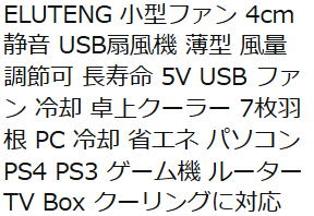 - 【幅広い実用性】ファン 4cm usbはパソコン、ルーター、HDDなどの冷却装置だけでなく、AV機器やゲーム機にも適しています。 USB端子を備えた機器に接続するだけで、配線の手間をかけずに簡単に冷却できます。ファンの本体の厚さは1cmで金属製フレームを付けると、厚さは1.4cmになる。サイズが小さいから、狭いとことに最適!