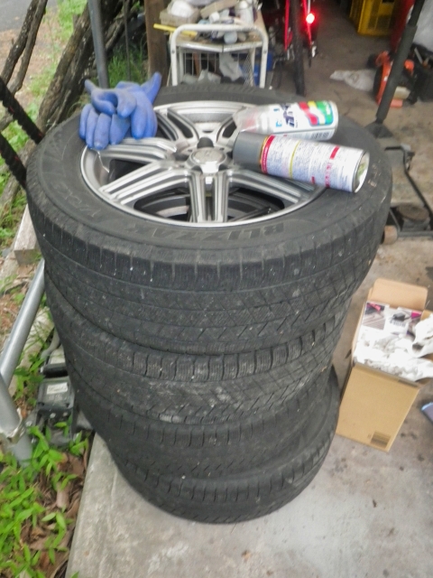 5/24 キャラバンのスタッドレス用ホイールの塗装が終わったので、次はインプのスタッドレス用ホイールの塗装