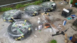 塗装終わったホイールのマスキング剥いでセンターキャップ取付