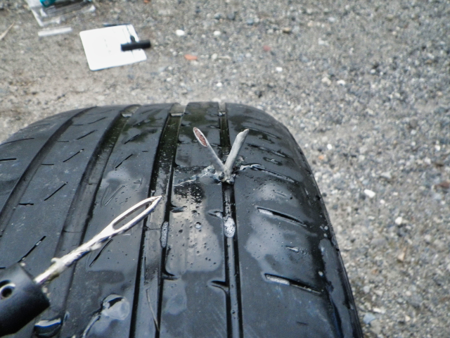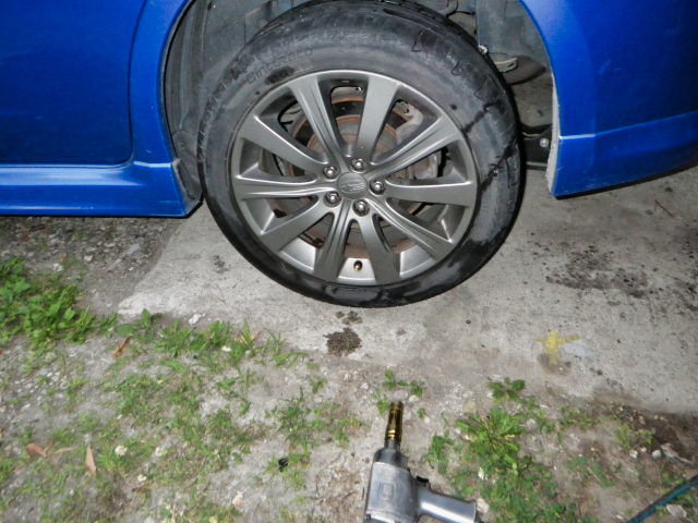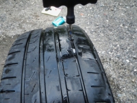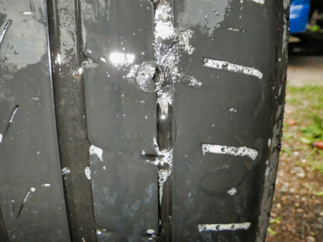 7/5の夕方、インプの左後輪のエアーが減ってる空気圧が低そうって事で測ったら 1kgf/cm²しかなかったので
