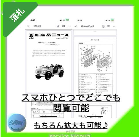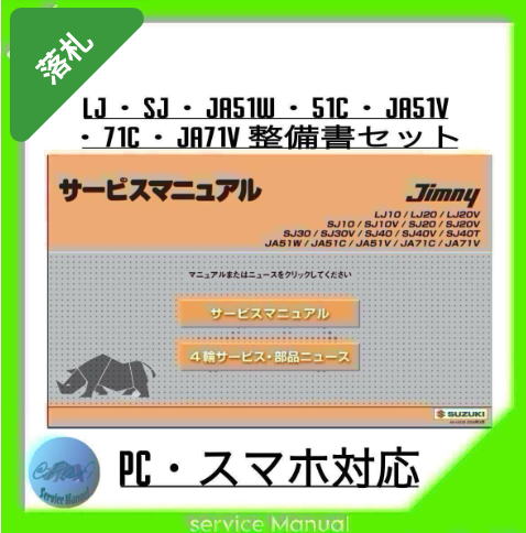 簡単なメンテから重整備まで必要な情報を 網羅しております。 「こちらの商品は[PDF]収録の商品になります」 ■ 収録型式一覧 LJ10 LJ20 LJ2OV SJ10 SJ10V SJ20 SJ20V SJ30 SJ3OV SJ40 SJ40V SJ40T JA51W JA51C JA51V JA71C JA71V ■ 収録エンジン整備説明書一覧 ・LJ50 H-SJ10,H-SJ10V ・LJ50(SJ30) H-SJ30,H-SJ30V ・F5A (T) M-JA71C,M-JA71V ・F10A L-SJ40,L-SJ40V,L-SJ40T ■収録内容 (※一部詳細です。写真枠2ページ目にてご確認下さい。) ・整備説明書 ・ウインチ説明書 ・整備説明書 ・新商品ニュース ・整備説明書( エンジン編) ・新商品ニュース( 新車解説書) ・新商品ニュース( 補足版) ・新商品ニュース ・整備説明書( 車両概要編) ・整備説明書( エンジン編) ・整備説明書( 動力伝達装置編) ・整備説明書( 車体・車体電装品編) ・整備説明書( 参考資料編) ・整備説明書( 走行装置編) ・新車解説書 ・サービスガイド ・整備説明書( 車両概要編) ・整備説明書( エンジン編) ・整備説明書( 参考資料編) ・新車解説書 ・新車解説書( 整備編を含む) ・サービスガイド ・整備説明書( エンジン編) 「※一部詳細 要写真枠2ページにて確認」 【収録内容を要確認の上ご購入ください】 ■ 配送方法 DVD-Rにて送付で御座います。 「1枚に全てのデータを収録しております」 ・おてがるヤマト便にて配送 「お荷物の追跡機能有り」 ■ 閲覧・印刷方法(DVD-R収録) PCから閲覧・印刷可能です。 【 PDF収録商品です 】 ━━━━━━━━━━━━━━━━━━ ■ モバイル端末利用について スマホ・タブレット・PCから 閲覧・印刷も可能です♪ ◆ DVD-R収録品も発送致します ◆ |