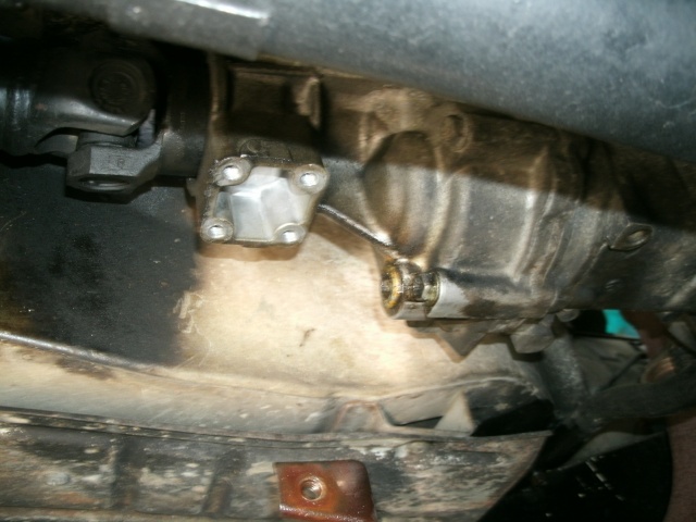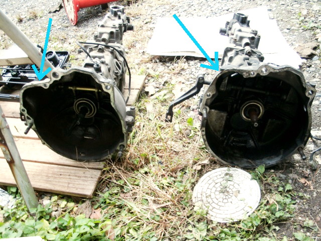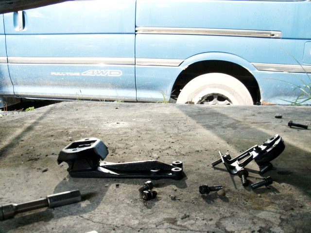 ミッションマウントを外し、ドライブシャフトを片側外して横へずらして、ミッションを外す。