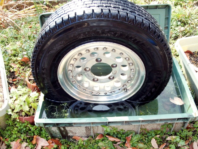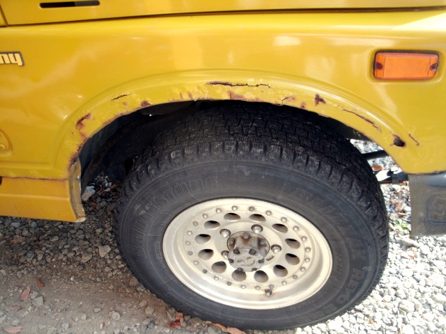 【11:51】 先に、インプの冬タイヤへの交換を済ませてから、パンクしたタイヤにエア入れて、 洗剤泡で漏れている箇所を探すが、特定できず..... しょうがないので、大きいプラ箱に水張って漬けてみたけど....ブクブクない ![]() で、他の3本見てみたら、全部エア圧1kgぐらいしかなかった 結局、チューブレスの最低エア圧以下になって、自壊したような感じかな いやぁ、ただの整備不良ですな で、ついでにタイヤを良く見ると、このジムニー1号から継承した2007年のスタッドレス。 4本共、トレッド面が結構硬化してて、効き悪そう + 2本がヒビが結構酷い。 って事で、今季買い替え決定。 【12:23】その後、つい、放置してあった、ボディ前部の浮き錆を剥がし始めてしまい....(笑)