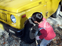【10:17】まずは、昨日発覚した、ジムニー3号の右後輪のパンク修理