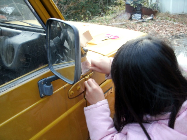 乾燥させている間に、ハイエースを冬タイヤへ交換。 【15:40】その後、アルミテープを貼りまくり。