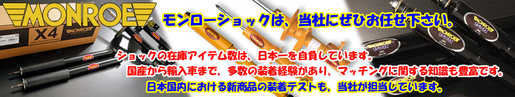 当社は、モンロー製ショックに関しまして、多種、多数の在庫を持っています。
