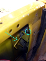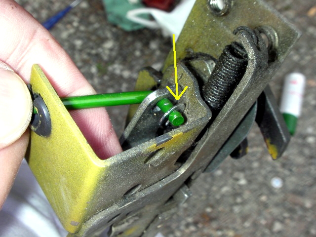 | で、この穴にフックを差し込んで抜けなくなるようにすれば良いようなので、外して、切り込み入れて、Eクリップで留める事にする。 |