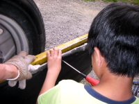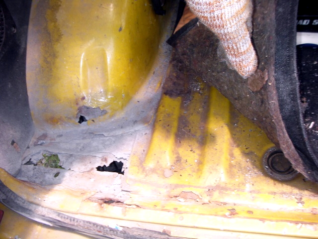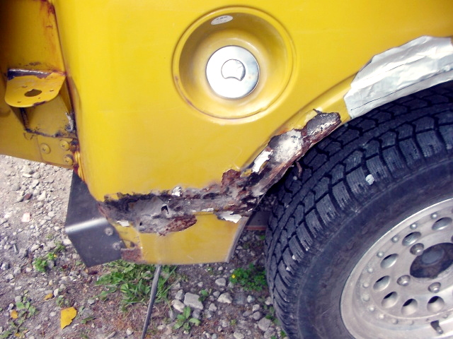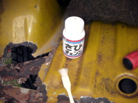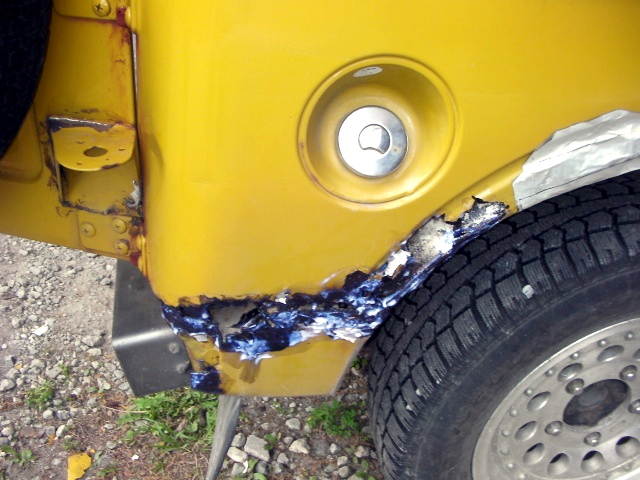 ここ(左後)は、完全に抜けてるので、FRP張って補修する事にする。 |