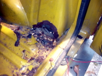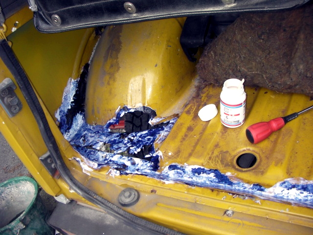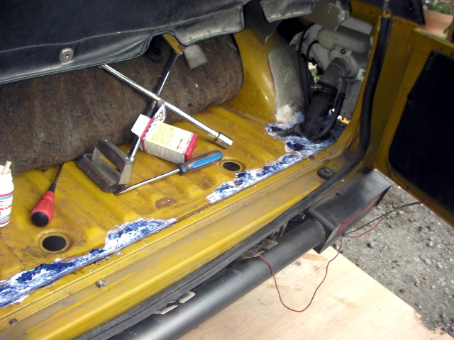 | そして、リヤゲートの修理を始めたら、左後部の床が腐って抜けてるのが気になって、こっちもこの機会に少し補修する事にした。 |