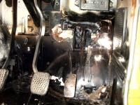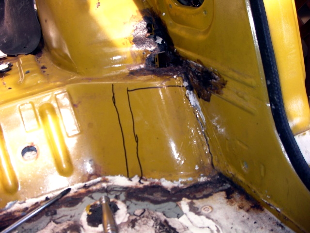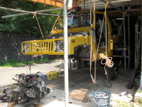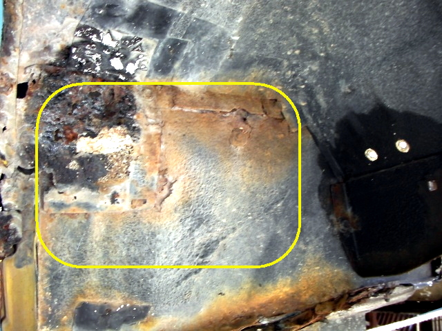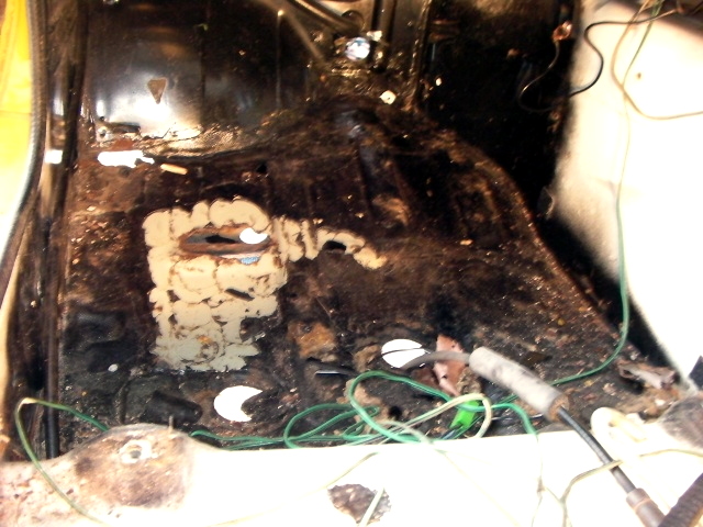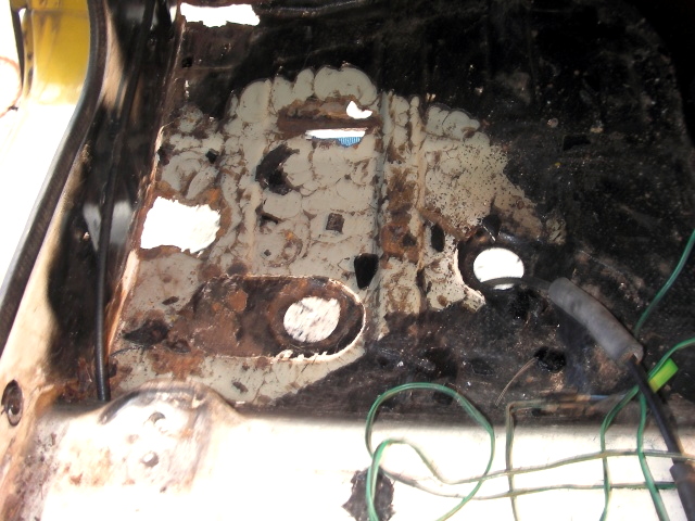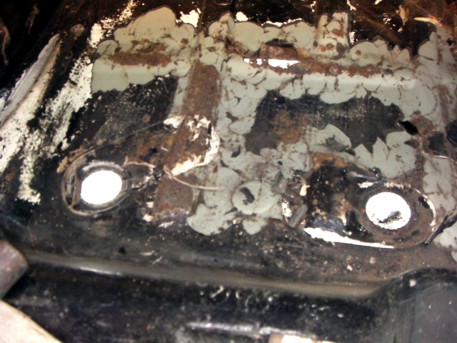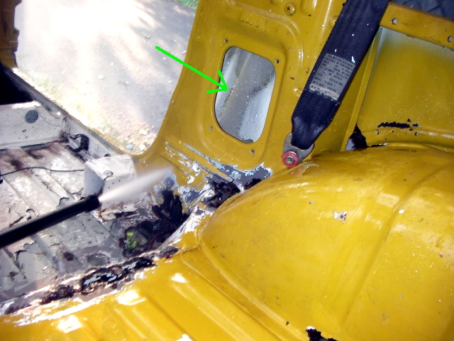 運転席・助手席あたりの室内とフレームの傷んでるトコの浮き錆除去して、塗料の剥離剤塗って高圧洗浄。 |