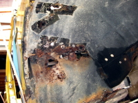 | 【15:00】エンジンルーム右側の下あたり(ブレーキマスターシリンダーの下)が、結構錆びてる。 |