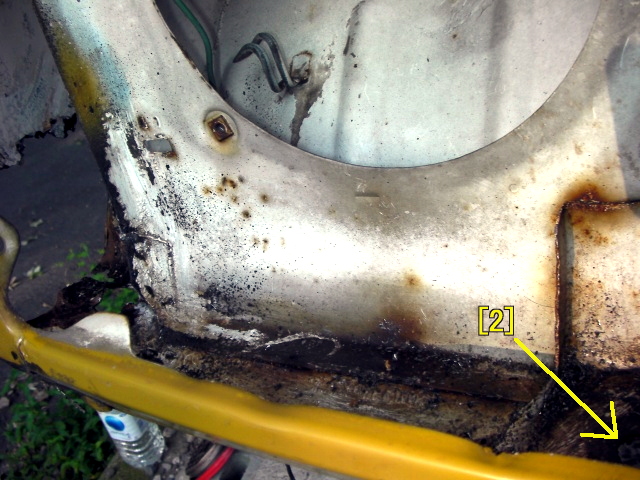 | 運転席前方裏側あたり(ボディマウント[4]あたり) |