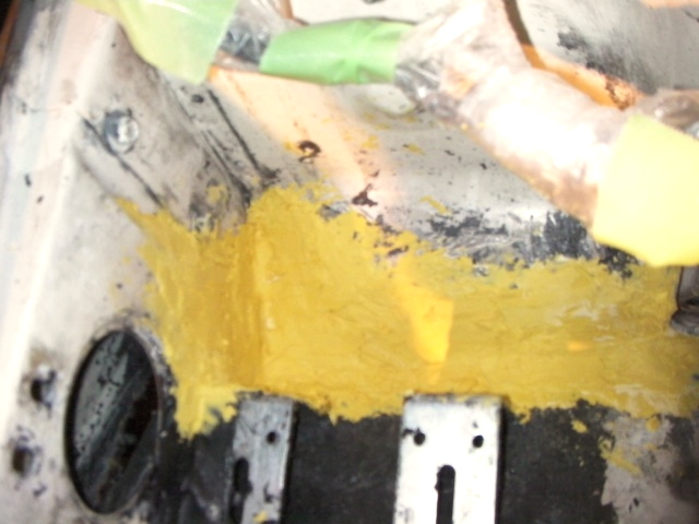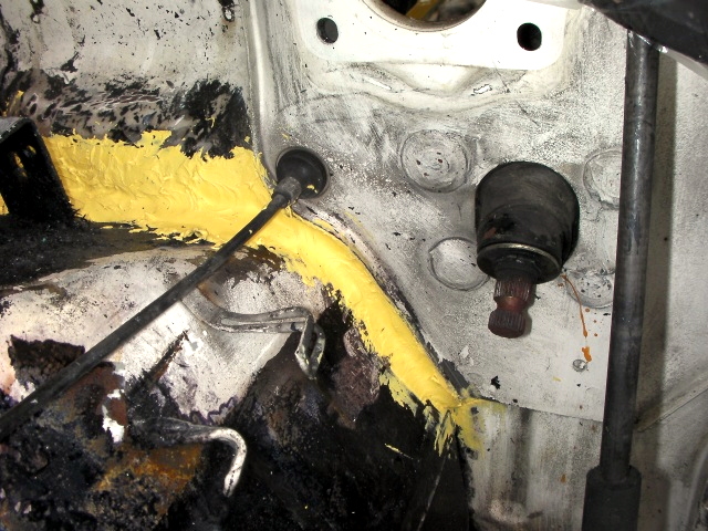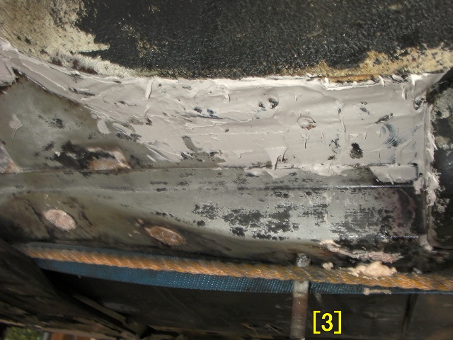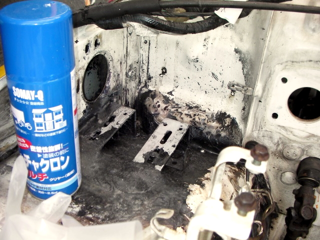 明日のパテ埋めのため、少し削って錆置換剤塗布 |