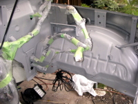 | 運転席前のバッテリー下のトコは、ほぼ見えないトコなんで過剰な気もするが、更に成形を重ねる(笑) |