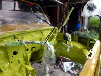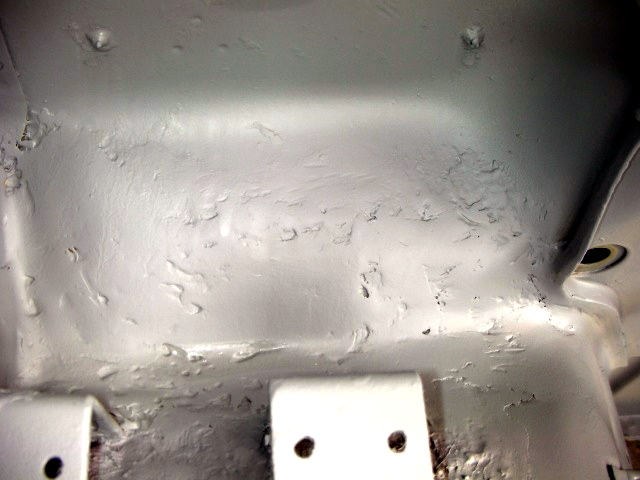 プラサフを少しだけ研磨して、とどめのパテ埋めしてエンジンルーム内の塗装。