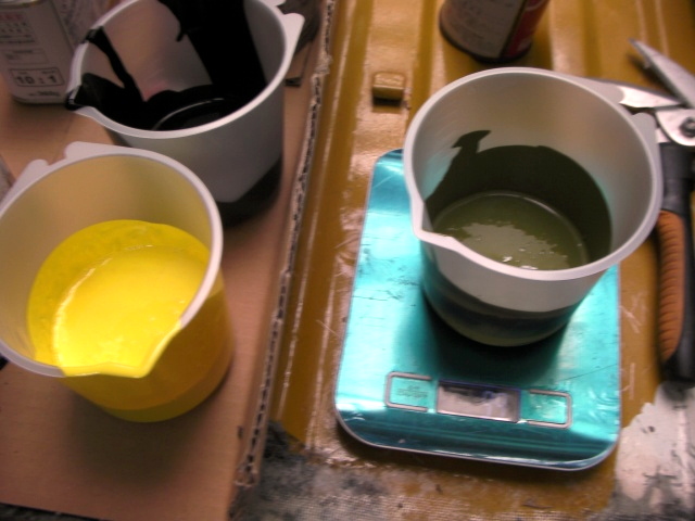 何度か配合替えて、イエロー2%、ブラック98%で、結構綺麗なイエローグリーンとなった。