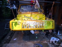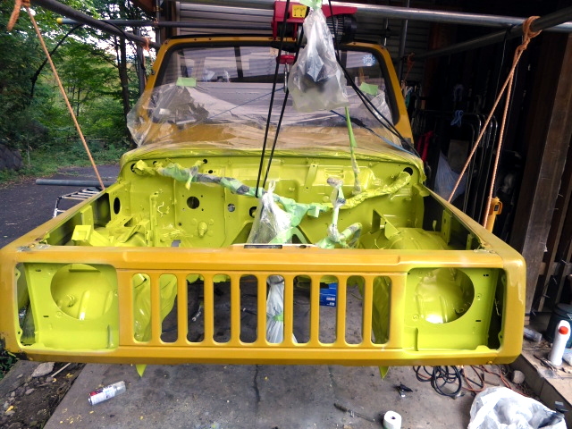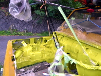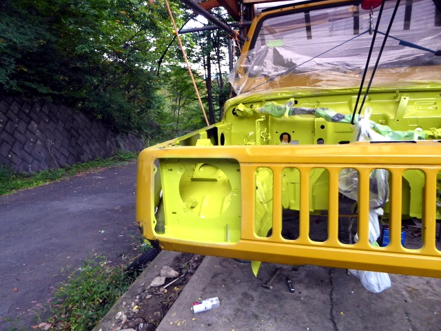 事前にタミヤカラーで色合わせし(笑) イエロー5%、ブラック95%で現車の色に近くなったんだけど.....