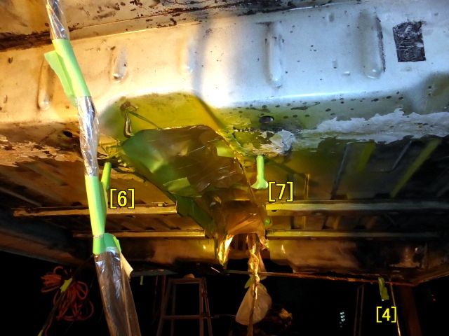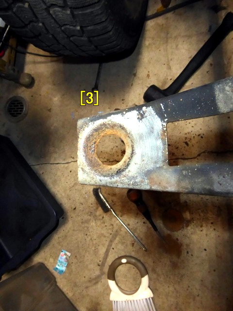 ボディマウントのブッシュ外したら、[4]の部分が崩落して大穴 また熔接補修しなければ... |