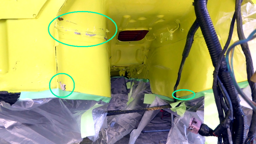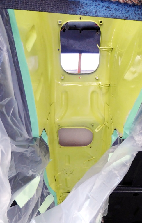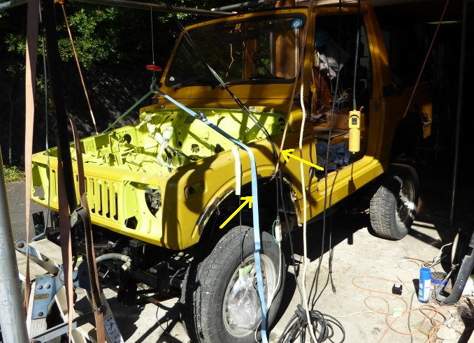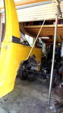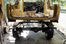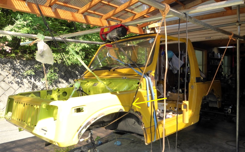 ボディ下の最終塗装、ボディとフレームの合体等