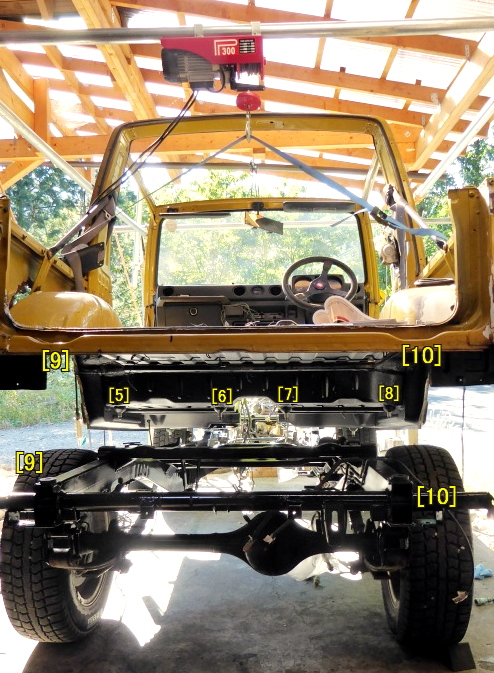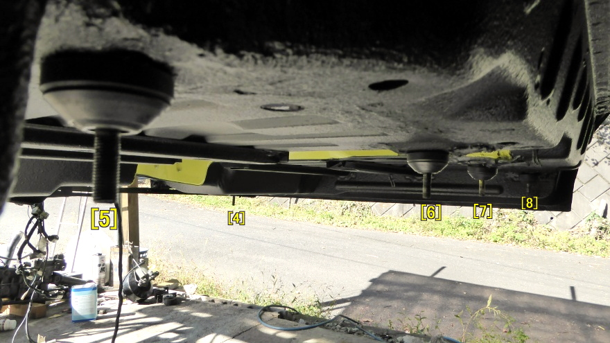 便宜上、フロント左〜リヤ右まで、ボディマウント全10ヶ所に[1]〜[10]とナンバリングしてみました。 |