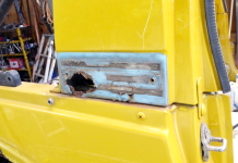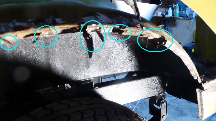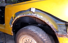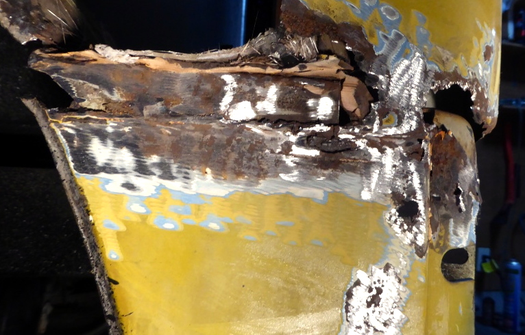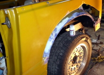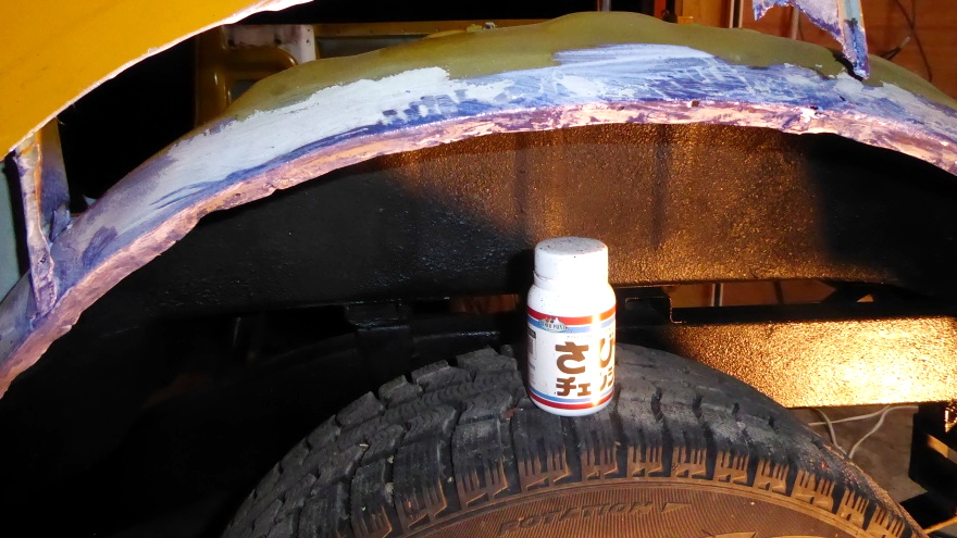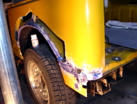 左リヤフェンダーの修復作業。 |