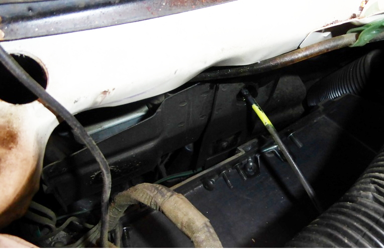 グローブボックス裏のボンネットキャッチのケーブルのコネクタが中々外せず、結構時間掛かった。 |