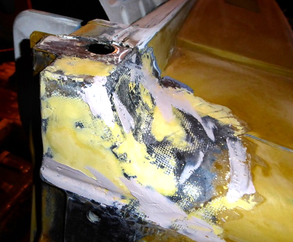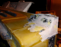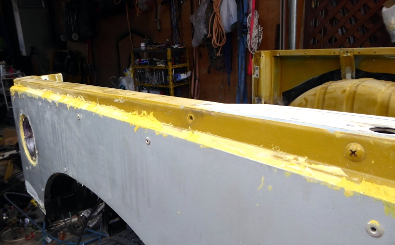 厚付けパテの研磨後、薄付けパテ塗布。 |