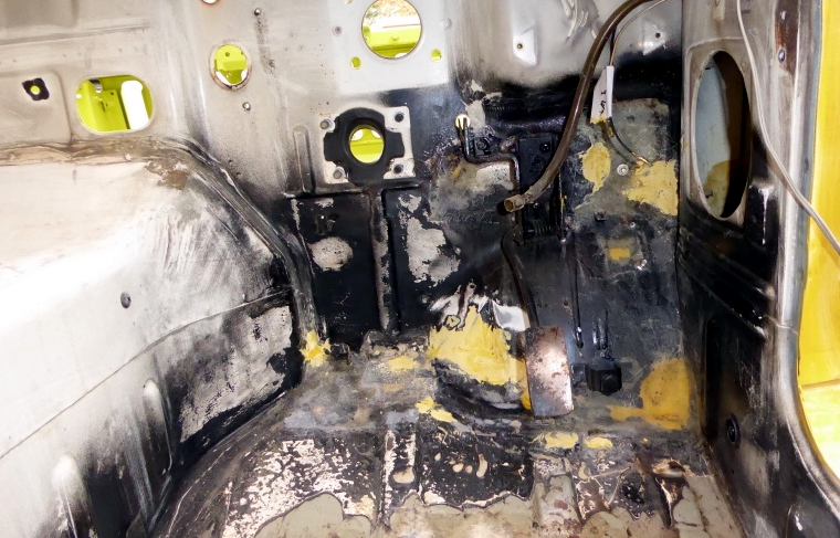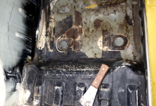 | 再生後は、カーペットレス仕様なので、床も概ね露出になる。って事で、そこそこの塗装下地を作る。 |