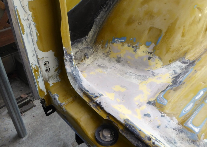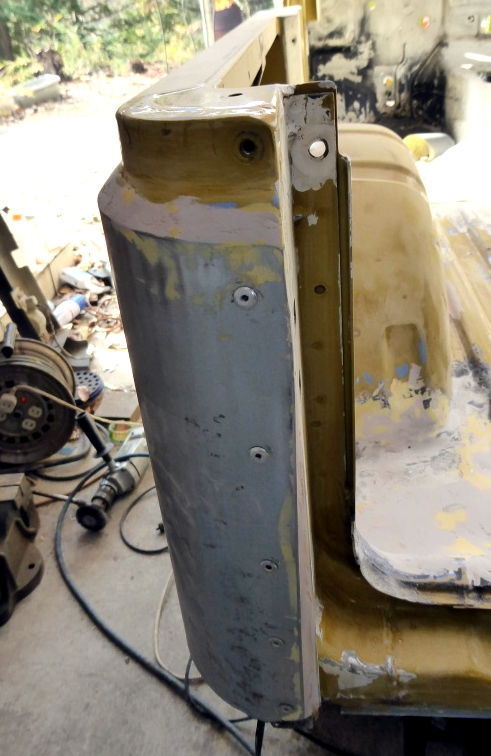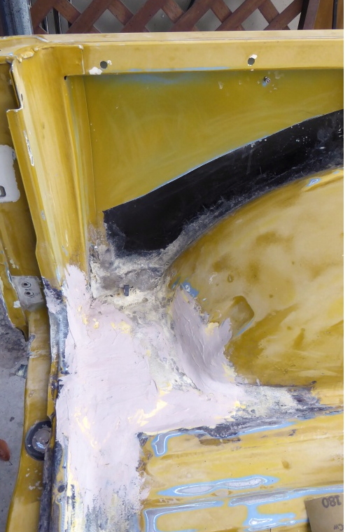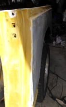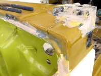 | 【9:41】本日の作業前、前回は、薄付けパテ(中目)を盛ったトコで終了。 |