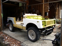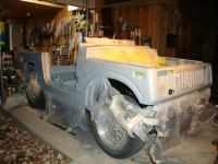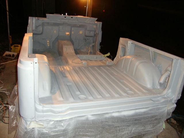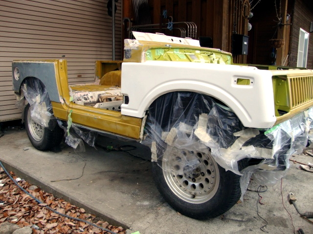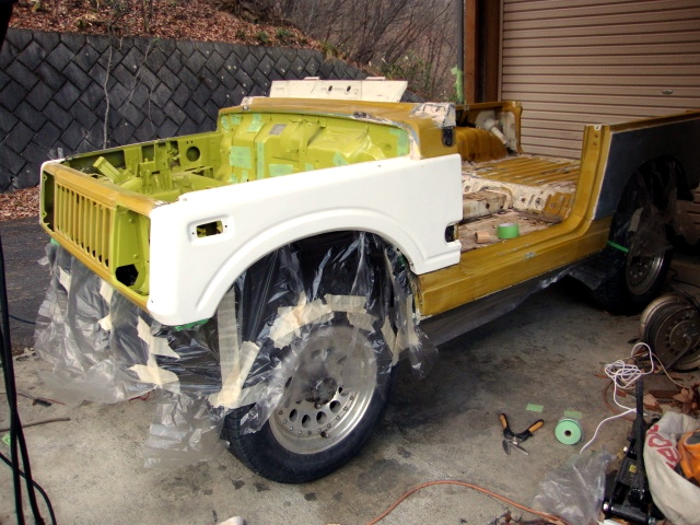 | 【18:13】風強くて寒くて暗い中、プラサフ1回目塗装終了。後で見たら、薄かったりタレてたり(^^; |