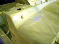 【14:00】塗り肌が粗かったり、ちょっと暗かったので、塗りが薄いトコもあって、#400で全面水研ぎした。(室内は少しだけ)