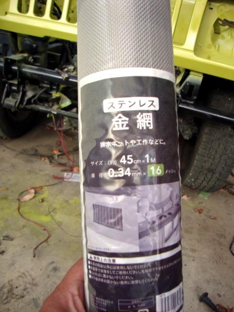 当初計画では、この部材に、金網を被せて取付して、ボディに取付する予定だったけど、