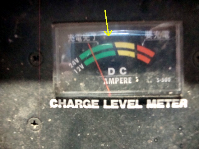 | このメーター癖があって、黄色の線あたりが完充電(笑) |