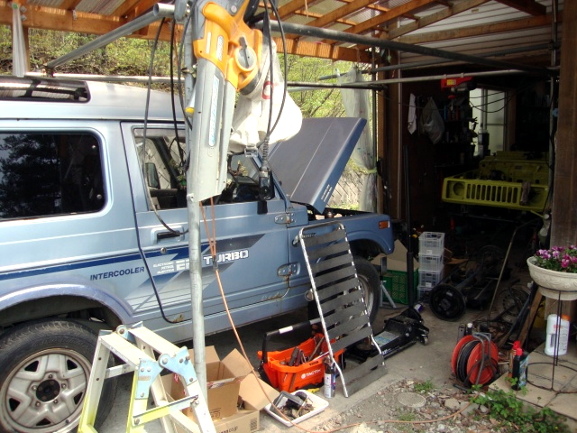 | さて、5号の退場作業。エンジン載せただけで、ブレーキしか効かないので、当然牽引で(笑) |