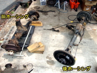 | 次は、5号から外した前後ホーシングを高圧洗浄してから分解。再組み立て用に、たくさん撮影しとく。 |