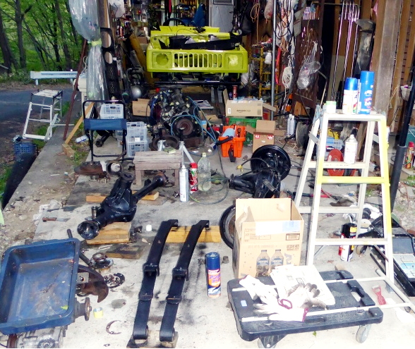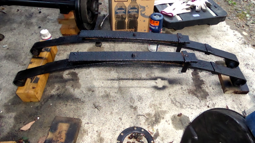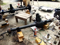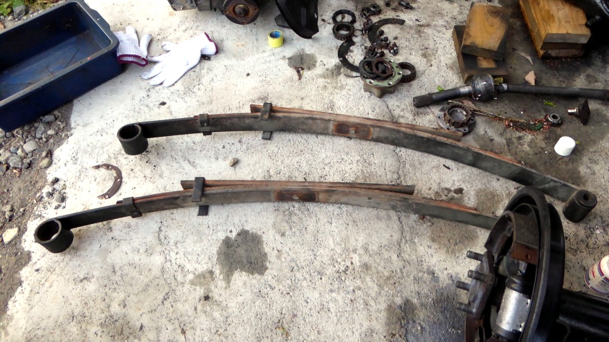 次は、3号のリヤのリーフスプリングを錆落しして塗装、そしてウレタンブッシュへの交換のために取り外し。