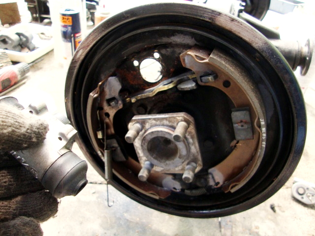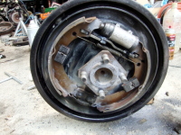 次は、左リヤブレーキ。右側は、減ってもいないのにシュー外して、組み付けに難儀したので、