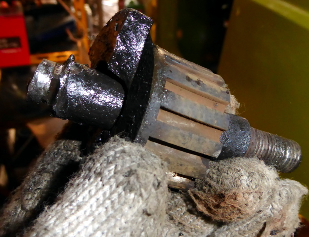 ナット側からハンマーで叩きまくって、カラーを潰してやっとぬけた |