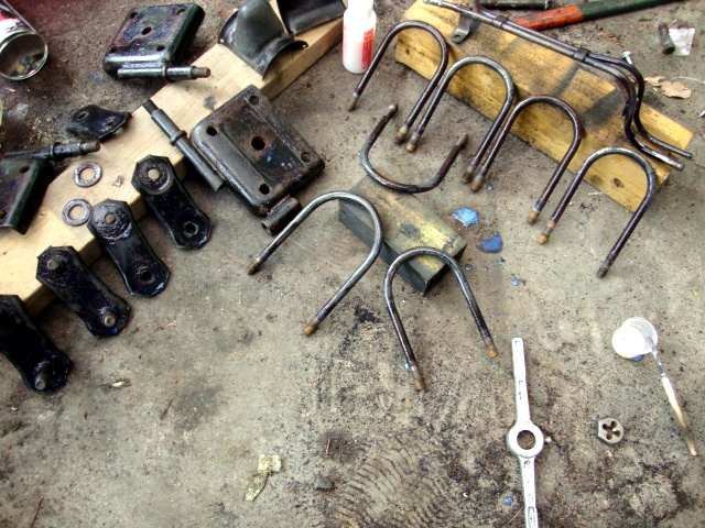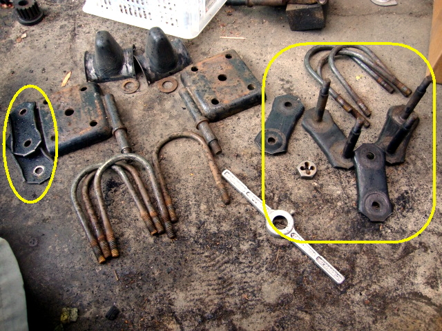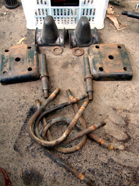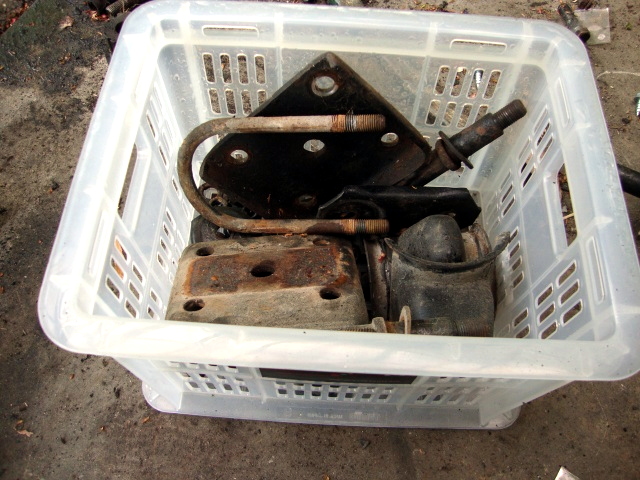 次は、フロントのスプリングシートとかUボルトの錆落とし。