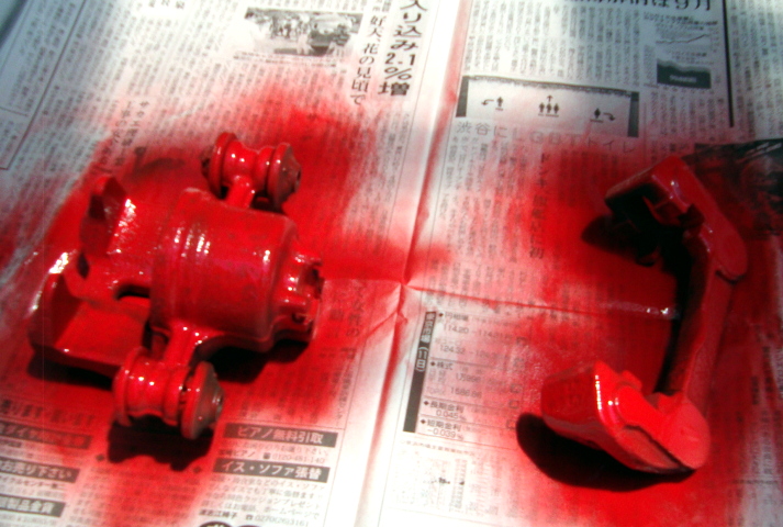 | 左側は、全バラしてから清掃して、マスキングして塗装したけど、マスキングが結構メンドだったので、こっち側は、スライドのボルト周りは、このまま塗ってしまって(どうせ捨てるゴムパーツなので)塗った後でバラす事にした。 |