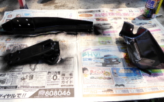 まずは、錆置換剤塗ってあったステー類の塗装。