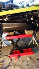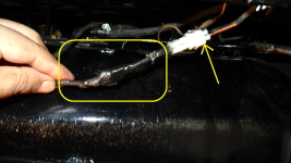 | まずは、マフラー付けると作業しにくくなるので、メインハーネスをフレームとボディの間に通す作業から。 |