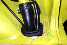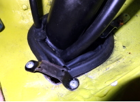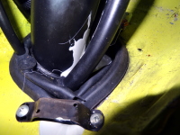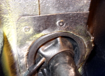 穴はノコ刃で削って少し拡大して、ブーツも切れ目入れて、金具で強引に止める事にした。 |