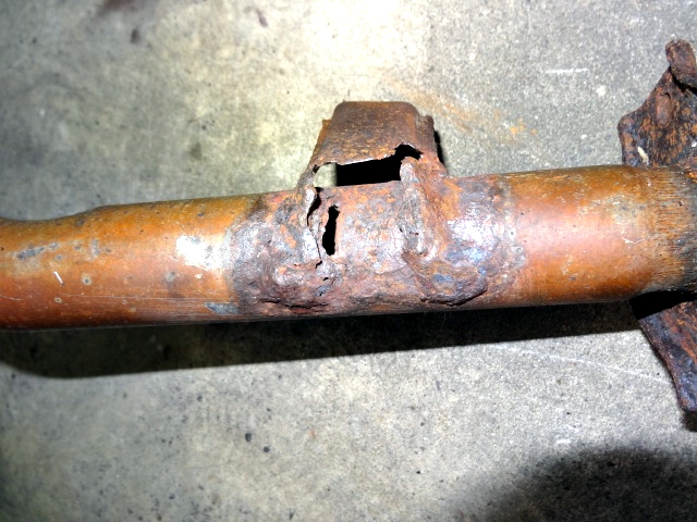 で、JA11のフロントパイプを使うんだが、錆落ししてみると、ステーのぐらつき以外に錆穴もあった