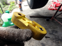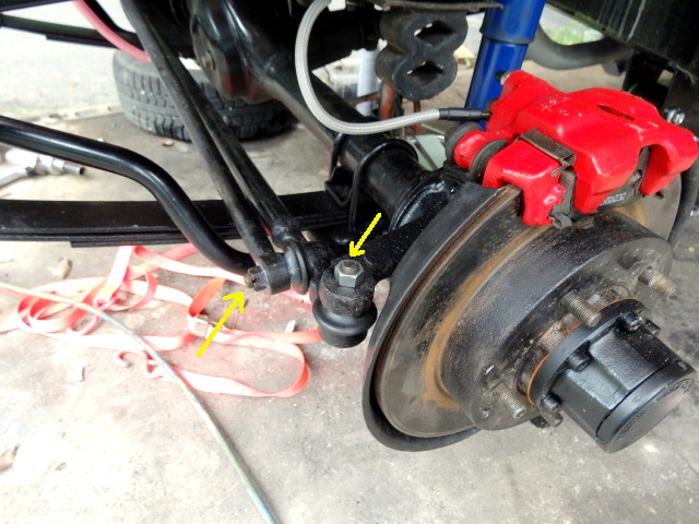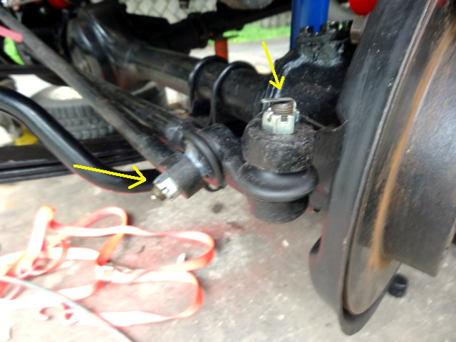 | 次は、新しいキャッスルナット待ちで仮止めだったステアリングリンケージの固定。 |