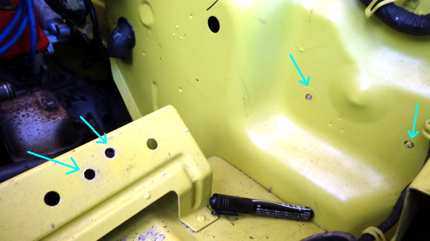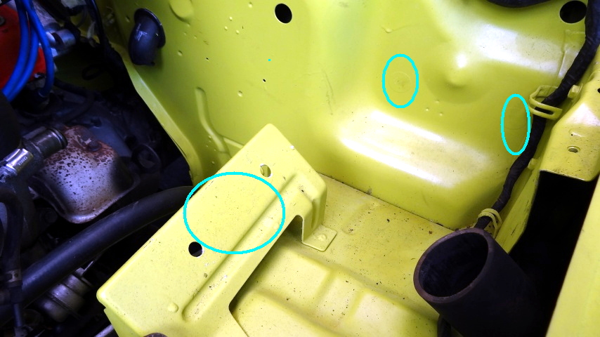 | エンジン・補器全てをJA71前期→後期にスワップしたので、後期で増えたデバイスを付ける穴が前期ボディには無いので、後期ボディに合わせて穴開け。 |