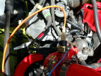 今回、ホースの中間にアダプター入れるので、スイッチかアダプターにアースを付けないといけない。