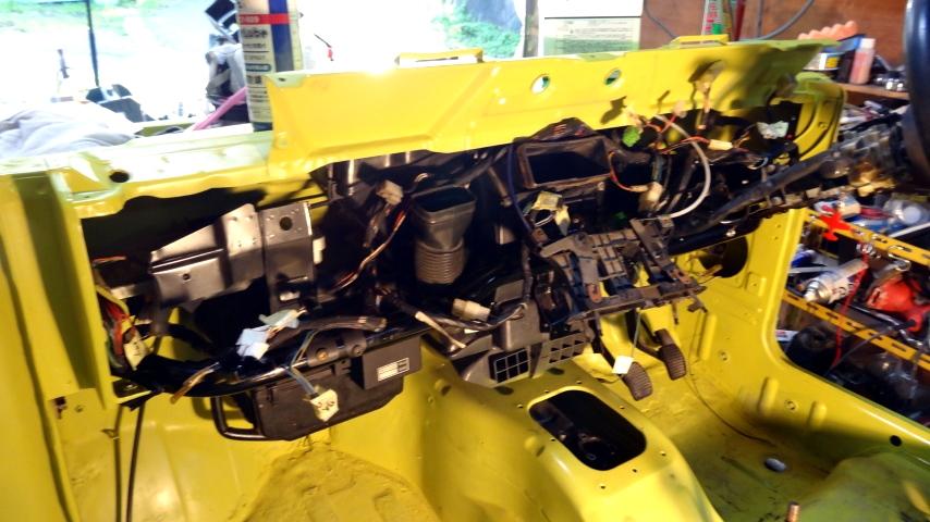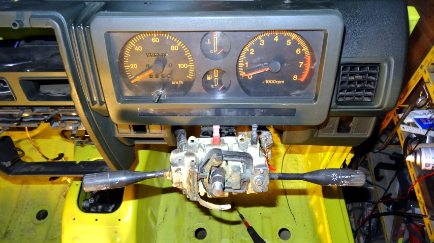 せっかく付けたダッシュパネルを外すより、ハンドル外す方が簡単なので外した。 |