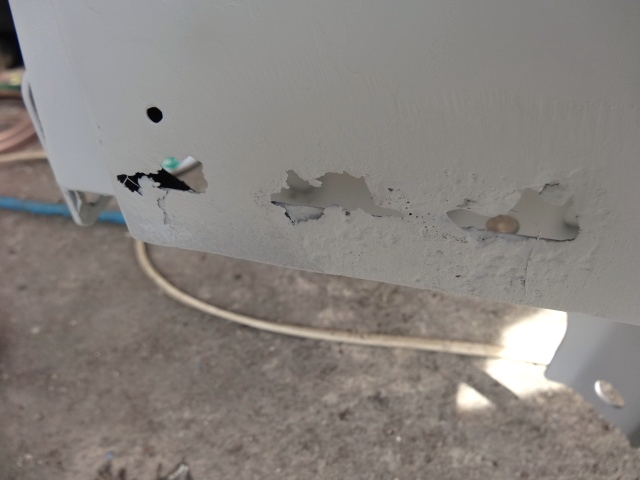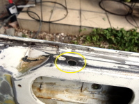 結局センターピラー上のネジはパテ埋めしてしまう事に決定 |