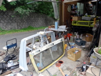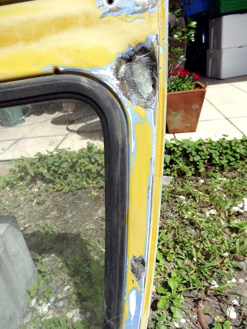 | 【12:12】パテ埋め前のセンターピラーとフロントウィンドー |